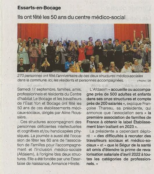Pour fêter les 50 ans du Centre d'Habitat et de l'ESAT, mais aussi les 60 ans de l'AFDAEIM, 270 personnes se sont retrouvées dans la salle du Vallon à Ste Florence.